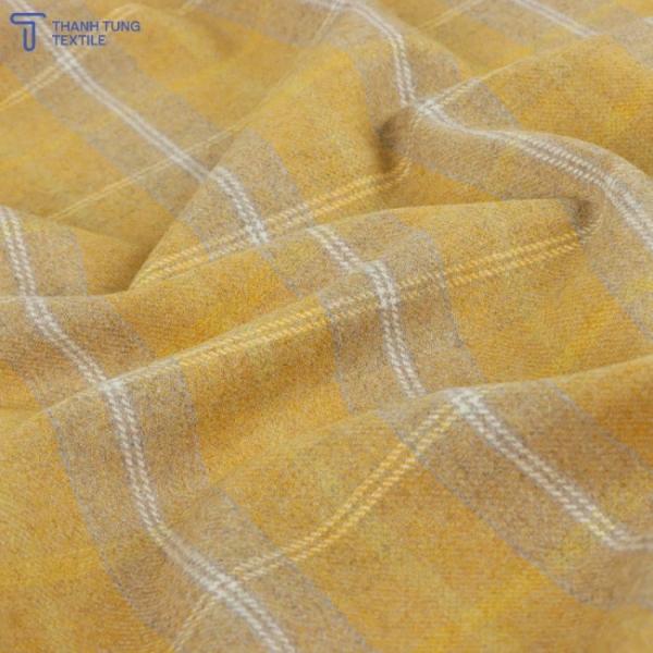 Vải dạ kẻ là chất liệu bền bỉ bất chấp thời gian, luôn trở thành xu hướng, đặc biệt là trong thời trang giới trẻ. Dòng vải này có bề mặt được phủ bởi lớp lông ngắn siêu mịn, mang tới cảm giác mềm mại và thoải mái. Vải caro sọc vàng dạ kẻ ít co giãn, khả năng thấm hút không cao nhưng chất liệu này lên phom dáng rất đẹp, mang lại tính thẩm mỹ cao. Thông số chi tiết: